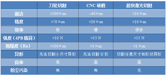 LCD屏幕的結(jié)構(gòu)模式是雙片疊加,雙片玻璃的超薄特性決定了它的脆性,切割的時(shí)候容易產(chǎn)生崩邊,而崩邊則影響玻璃的強(qiáng)度,因此切割方式造成的崩邊量非常重要。