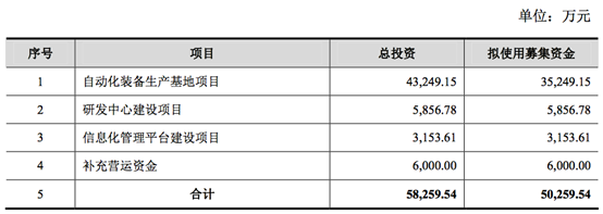 此次,光大激光擬募資5.03億元用于投建自動化裝備生產基地項目、研發中心建設項目、信息化管理平臺建設項目、補充營運資金等。如下: