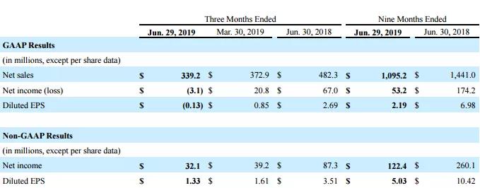 世界領先的激光、激光技術和激光系統解決方案提供商——相干公司,日前公布了第三財季業績報告(截至2019年6月29日)。報告顯示,相干公司第三財季凈銷售額為3.392億美元,同比下降29.67%。按美國公認會計原則(GAAP)計算,凈虧損310萬美元,每股攤薄收益0.13美元。