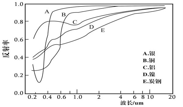 紫銅在焊接過程中產生的高反光強度比切割更嚴重,有研究表明常溫下紫銅對1064nm波段的激光吸收率只有4%,波長越短其吸收率越高(如圖6),目前市場上最具有優勢的為波長532nm的綠光激光器,但這種類型的激光器由于技術和價格等方面的原因,使得其在工業領域還未得到有效的應用。