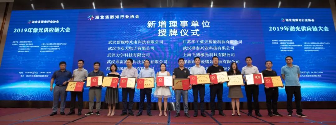 新增理事單位分別是:華工藍天、眾大電子、新銳特光電、英谷激光、飛博激光、歐凌 鐳射、凱普林、國進電氣、諾派激光、弗雷德斯、力爾科技、研泰興 業