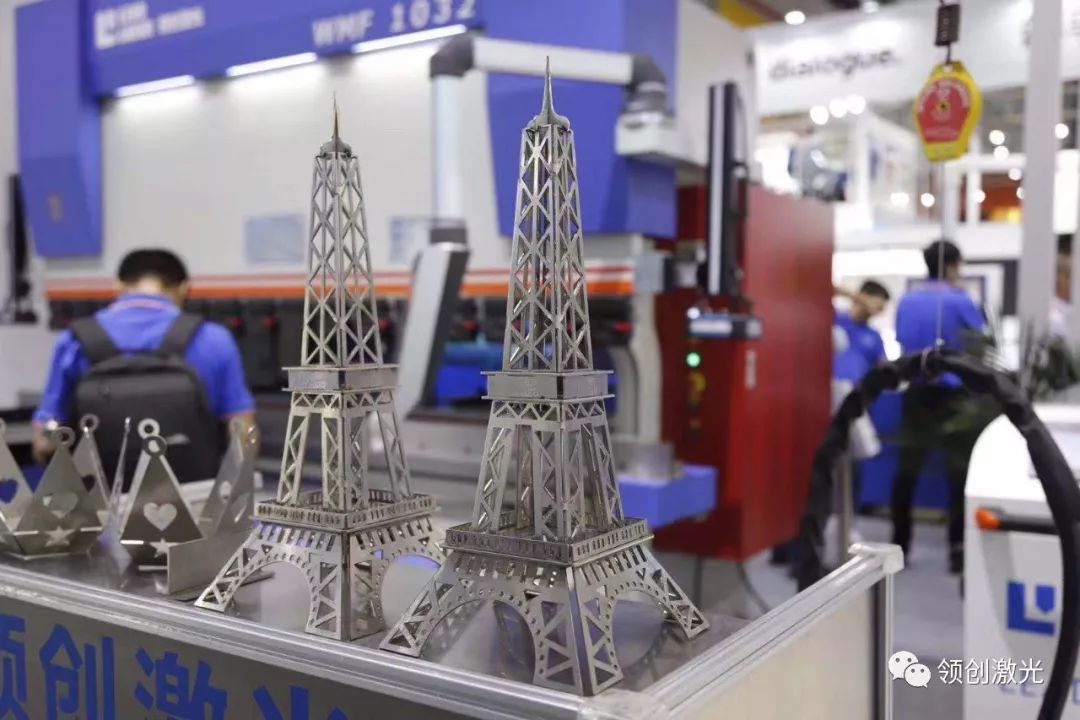 活動現場高潮迭起,氣氛熱烈,在鈑金成形技術展區,領創激光設備現場制作埃菲爾鐵塔模型,從切割到折彎再到焊接,一氣呵成,精致美觀,贏得了在場觀眾的駐足贊賞,活動現場還將做好的鐵塔作為紀念送給參展的觀眾,一度將氣氛推向了高潮。這不僅是一份小小的禮物,也代表我們公司對高品質的不懈追求。