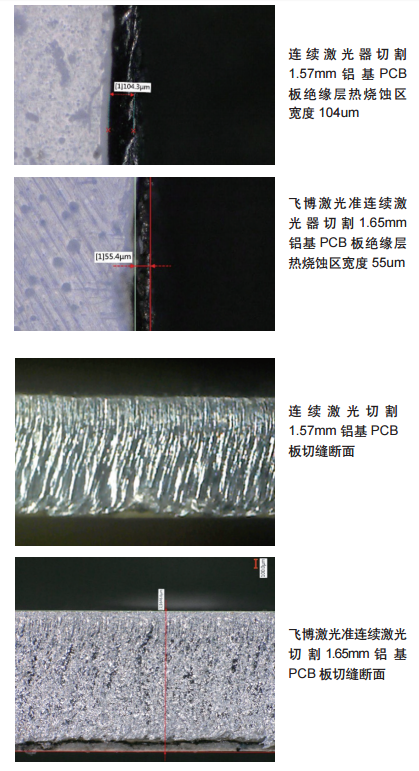 絕緣層燒蝕區小 絕緣層的主體材料是有機樹脂,熔點較低,對熱量較敏感。準連續激光切割時采用脈沖輸出,切割的熱影小,因此絕緣層的燒蝕區也小。