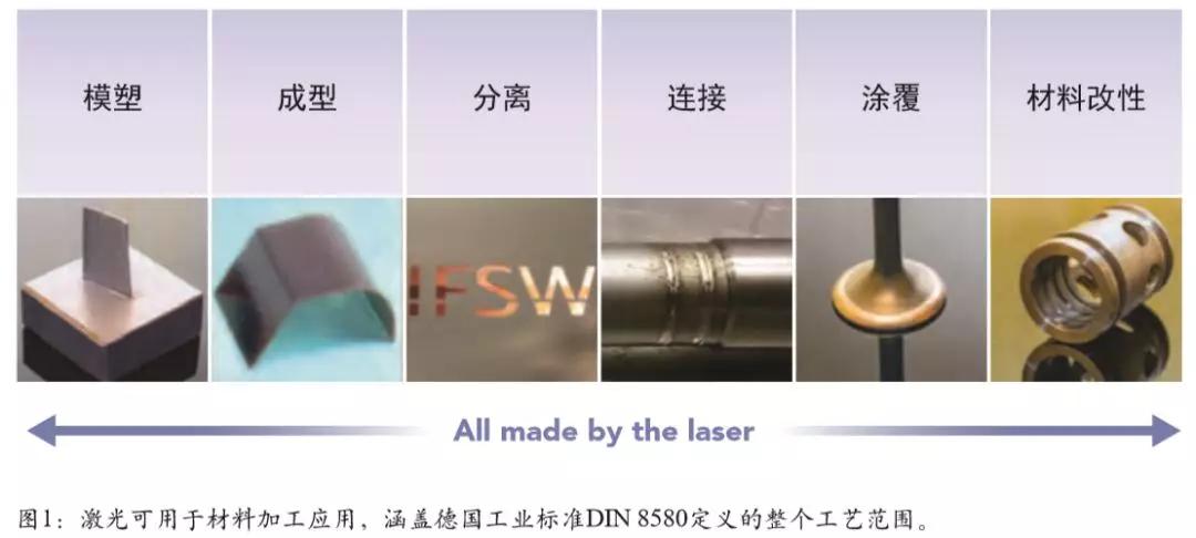 幾十年來,眾所周知,激光是一種非常靈活的材料加工工具,可用于滿足各種制造應用,實際上涵蓋了德國工業標準DIN 8580 定義的所有制造工藝。DIN 8580 將工藝 分為模塑、成型、分離、連接,涂覆和改變材料特性(見圖1)。在 1992 年的教科書中,Helmut Hügel 就這樣說道 :“激光在工業制造中的重要性,在于其在各種加工工藝方面的非凡靈活性,包括切割、燒蝕、鉆孔、焊接、硬化、合金化、重熔,以及眾多材料和不同的工件配置?!?/span>