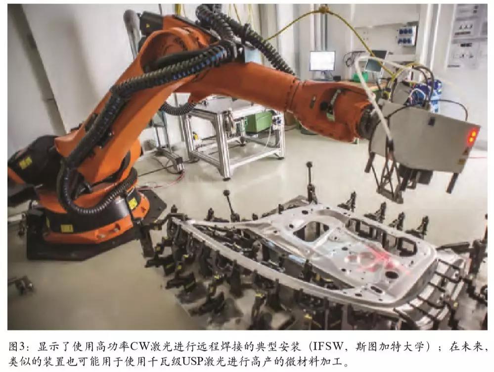 但所有這一切都將改變。由于USP激光器的平均輸出功率剛剛進入數千瓦級(見圖 2),這種類型激光器 的使用目前正在擴展到傳統的微加工實驗室之外,并且確實征服了大規模的制造應用。因此,我們將看到更多基于激光的高精度超快材料加工在大型生產機器上進行,初看起來與我們用于切割或焊接等的經典宏觀應用非常相似(見圖3)。因此,在同一臺機器上執行所有已知激光材料加工應用的想法很自然。但這可以用同一臺激光器實現嗎?