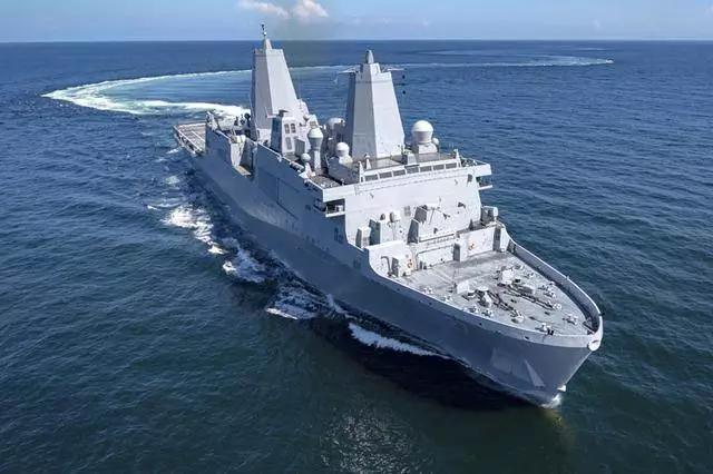 美國海軍共建造了13艘“圣安東尼奧”級兩棲船塢運輸艦,目前已服役11艘,單艘造價高達16-20億美元。該艦長208米,滿載排水量為25300噸,采用41600馬力的柴油機推進,最大航速超過22節(jié)。該艦主要以搭載LCAC氣墊登陸艇為主,最多可搭載2艘,另外還可搭載14輛兩棲戰(zhàn)車,艦載機可搭載2架MV-22“魚鷹”。