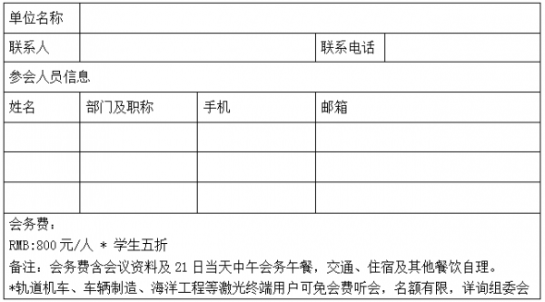 協辦單位:湖南大學、廣東省激光產業技術創新聯盟、湖北省軍民融合激光產業聯盟、臺灣雷射科技應用協會、湖北省激光行業協會、江蘇省激光產業技術創新聯盟、湖南省機械故障診斷與失效分析學會、深圳市儀器儀表學會、江門市智能激光技術研究院、深圳市激光智能制造行業協會、武漢光谷航天三江激光產業技術研究院、湖南高科園創業管理服務股份有限公司、株洲中車時代高新投資有限公司、湖南省焊接協會、廣東星之球激光科技有限公司、株洲高新區軌道交通產業鏈