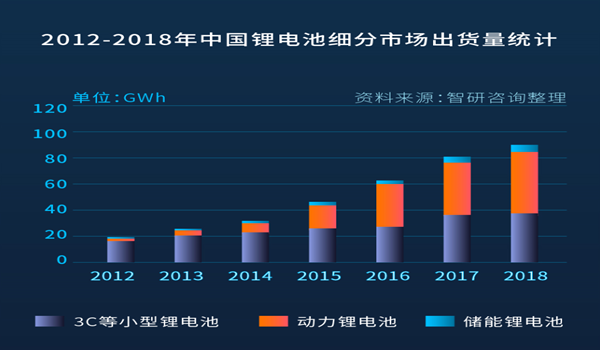 隨著新能源行業的蓬勃發展,鋰電池的需求量急劇增加。調研數據顯示,2018年中國鋰電池總出貨量102GWh,同比增長27%。其中動力鋰電池出貨量為65GWh,同比增長46%。占鋰電池總出貨量的63.7%,較2017年上升8.3個百分點。
