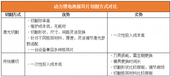 面對新能源時代下動力鋰電池商業化的發展需求,各大企業廠商都迫切想要找到一個能從根本上“提質降本”的解決方案,以突破現有制造加工技術下的應用局限。其中,在動力鋰電池的極耳加工環節中,傳統的五金模切技術存在的瓶頸就已日益凸顯,包括加工效率低、應用靈活性差等問題,已無法適應智能制造的發展要求,取而代之的激光極耳切割技術則成為了降低動力鋰電池極耳片生產成本,提升產品穩定性的新路徑。
