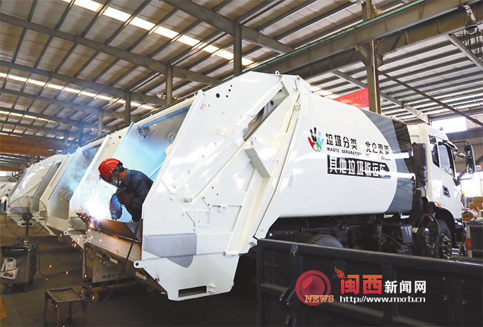 龍馬環(huán)衛(wèi)公司生產(chǎn)的環(huán)衛(wèi)車走俏市場。 余雅麗 攝