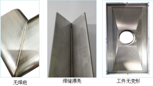 焊接速度和效果方面;比傳統氬弧焊接快2-10倍,一臺機器一年至少可以省2個焊工。焊接質量好,工件無變形,焊縫美觀、無焊疤,減少后續打磨處理成本。