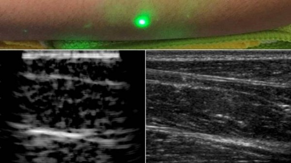 麻省理工學院設計了一種新方法,并使用激光超聲產生了第一批圖像。這項新技術不需要與身體接觸即可看到患者體內。該技術使用對眼睛和皮膚安全的激光系統。系統中的一個激光可以遠程產生聲波,通過身體反彈。第二個激光遠程探測反射波,這些反射波被轉換成與傳統超聲波相似的圖像。
