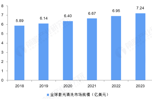 據(jù)市場研究機(jī)構(gòu)Reportlinker發(fā)布數(shù)據(jù),2018年全球激光清洗市場的價(jià)值將達(dá)到5.89億美元,到2023年預(yù)計(jì)將達(dá)到7.24億美元,CAGR為4.22%。