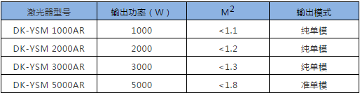 湖南大科激光有限公司已推出1000~3000W純單模光纖激光器產(chǎn)品和5000W準單模產(chǎn)品,其典型值如表1所示。