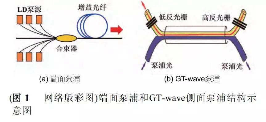 國(guó)內(nèi)科研院所與企業(yè)也積極開展了大功率光纖激光的研究, 其中中國(guó)科學(xué)院上海光學(xué)精密機(jī)械研究所(簡(jiǎn)稱中科院上海光機(jī)所)、清華大學(xué)分別基于LD端面泵浦, 實(shí)現(xiàn)了單纖7和10 kW輸出; 國(guó)防科技大學(xué)和中國(guó)工程物理研究院用分布式側(cè)面耦合包層泵浦(GT-wave泵浦, 如圖1(b)所示), 于2014和2015年分別實(shí)現(xiàn)了1和2 kW輸出; 中科院上海光機(jī)所和中國(guó)工程物理研究院采用光譜合成技術(shù)分別實(shí)現(xiàn)了10.8和9.6 kW輸出; 國(guó)防科技大學(xué)采用相干合成技術(shù)實(shí)現(xiàn)了功率2.16 kW單模激光輸出。此外, 國(guó)內(nèi)能夠研發(fā)、生產(chǎn)、銷售大功率光纖激光器的代表性企業(yè)主要包括:武漢銳科公司和深圳創(chuàng)鑫公司。其中武漢銳科公司推出了輸出功率涵蓋1~10 kW的大功率連續(xù)多模光纖激光器產(chǎn)品; 深圳創(chuàng)鑫公司也推出了連續(xù)功率1.5 kW單模光纖激光器和4 kW多模光纖激光器產(chǎn)品。