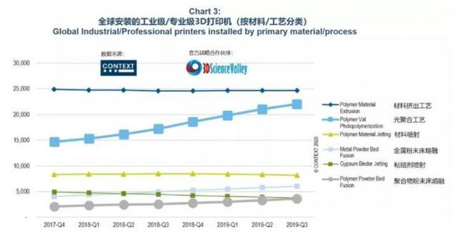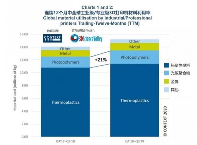 根據3D科學谷戰略合作伙伴Context的研究,在過去連續12個月(2018 第四季度-2019年第三季度)中,工業級/專業級3D打印機使用的塑料3D打印材料利用率增長了8%。