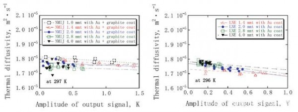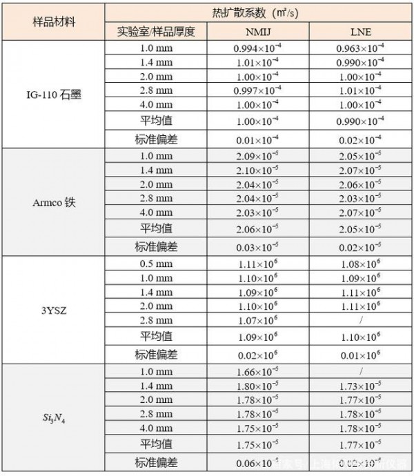 為了全面驗(yàn)證外推法在閃光法熱擴(kuò)散系數(shù)測(cè)試中的有效性,日本國(guó)家計(jì)量研究所(NMIJ)和法國(guó)國(guó)家計(jì)量和測(cè)試實(shí)驗(yàn)室(LNE)開(kāi)展了專(zhuān)門(mén)的比對(duì)測(cè)試研究[2],并計(jì)劃將外推法補(bǔ)充到閃光法熱擴(kuò)散系數(shù)標(biāo)準(zhǔn)測(cè)試方法中。