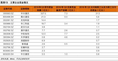 疫情短期擾動難阻5G進(jìn)程,通信行業(yè)供給短期可恢復(fù):作為5G建設(shè)的主力軍,三大運(yùn)營商近期分別召開了會議,5G依然是全年工作的重點(diǎn)目標(biāo)。突發(fā)因素對行業(yè)景氣度的回暖只會產(chǎn)生短期的擾動,并不會改變行業(yè)的整體趨勢。產(chǎn)業(yè)鏈上主要企業(yè)的庫存較為充足,能夠滿足下游客戶需求一段時間內(nèi)的需求。只要復(fù)工有序推進(jìn),行業(yè)供給的不足會在短期內(nèi)得到消除。對比主要企業(yè)的2019年Q3的貨幣資金規(guī)模、交易性金融資產(chǎn)規(guī)模以及支付給職工以及為職工支付的現(xiàn)金規(guī)模,我們認(rèn)為,這些企業(yè)在短期停工的情況下,企業(yè)的基本運(yùn)轉(zhuǎn)不會受到影響。整體來看,疫情只會是一個短期的擾動因素,并不會阻礙網(wǎng)絡(luò)的部署進(jìn)程。疫情結(jié)束后,整個設(shè)備產(chǎn)業(yè)鏈有望迎來產(chǎn)能的快速恢復(fù)以及運(yùn)營商需求的快速回暖。建議關(guān)注5G產(chǎn)業(yè)鏈和云計算產(chǎn)業(yè)鏈,關(guān)注標(biāo)的數(shù)據(jù)港、天孚通信、中際旭創(chuàng)、中興通訊、新易盛、世嘉科技。