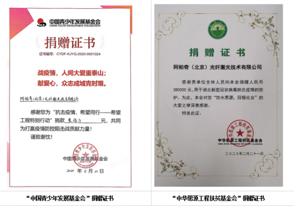2月25日,阿帕奇(北京)光纖激光技術(shù)有限公司捐贈(zèng)20萬美元,助力抗擊中國新型冠狀病毒感染的肺炎疫情防控工作。本次捐獻(xiàn)面向受疫情影響最大的湖北省,分為兩個(gè)部分: