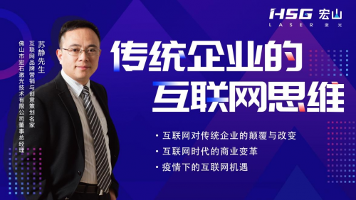 那么,到底什么是互聯網思維?傳統企業在互聯網時代又該如何構建自己的互聯網思維?2月22日,佛山市宏石激光技術有限公司(以下簡稱宏山激光)董事總經理蘇靜先生就互聯網思維的構建、特征以及在互聯網思維背后產生的商業變革和思考,在線與大家進行了一次深入的探討。