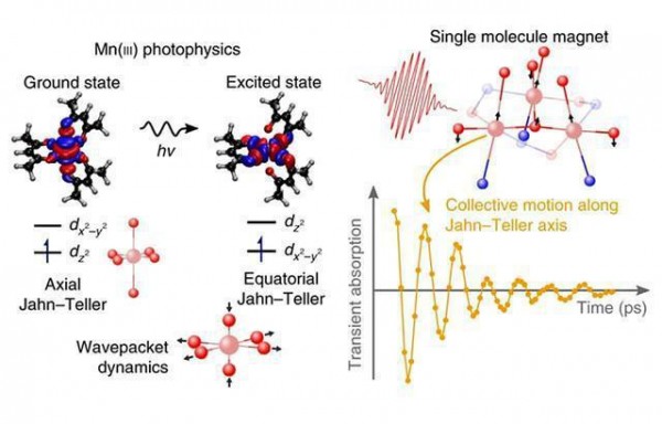他們發現,使化合物具有磁性的化學鍵可以通過在激光器上發出快速脈沖來控制。該化合物主要由元素錳組成,該元素以拉丁詞magnes命名,即磁鐵。