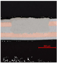 納秒脈沖光纖激光器的峰值功率較高,意味著可以較容易地以很小的平均功率進入銅等高反金屬中。使用納秒微焊接工藝作為焊接的一種替代方法,將元件直接貼合在銅印刷電路板(PCB)軌道上的研究顯示出了巨大的前景。目前已經成功將厚達150μm的銅引線貼合到>60μm的沉積軌道上,而與FR4基板之間沒有任何明顯的分層。這為熱敏元件或工作溫度可能超過傳統焊接極限的元件的貼合提供了替代方案。