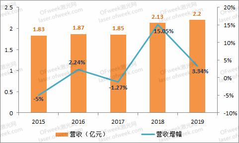 實(shí)際上,金運(yùn)激光在商業(yè)智能領(lǐng)域布局已久,并先后與玩偶一號、漢邦高科、騰訊科技等達(dá)成合作。2019年,金運(yùn)激光在工業(yè)智能板塊的數(shù)字激光加工設(shè)備銷售保持平穩(wěn)的基礎(chǔ)上,依靠商業(yè)智能板塊的智能零售終端設(shè)備實(shí)現(xiàn)銷售,使公司營收和利潤均有所增加,智能終端系列產(chǎn)品也首次單獨(dú)列入主營業(yè)務(wù)分析。近五年金運(yùn)激光業(yè)績情況如下: