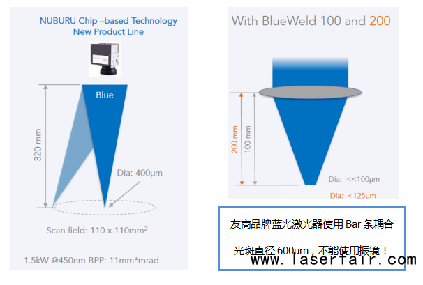 當然,AI-1500依舊可以配套焊接頭使用,并在100mm焦距處保持100um直徑光斑,或在200um焦距處壓縮光斑直徑<125um。(配合NUBURU BlueWeld 系列焊接頭)
