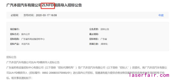 事實上,廣本從去年下半年就有所動作。因為在10月份之前,其工廠焊裝一科2LN車型激光焊自動化設備導入采購項目就進行了二次招標。招標內容為WE1 2LN車型激光焊自動化設備導入。
