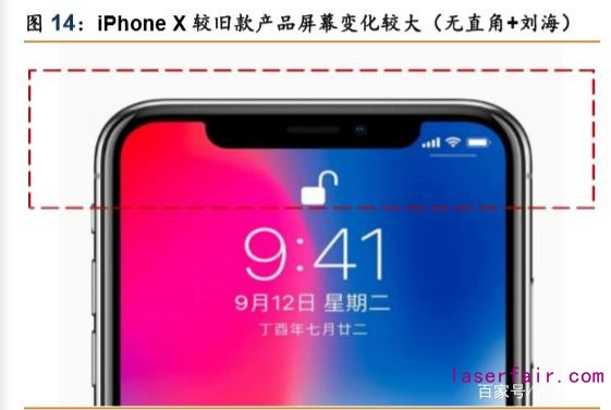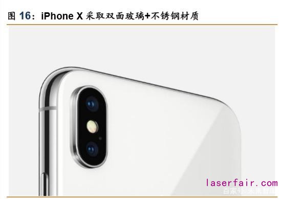 2017 年,蘋果推出新款機(jī)型 iphone X,作為 iphone 系列十周年產(chǎn)品,新款機(jī)型采取了 諸多重大創(chuàng)新,例如屏幕首次采用 OLED 材質(zhì)、取消沿用 10 年的底部 Home 鍵、后置雙攝 改為了豎向排列以及重啟雙面玻璃+不銹鋼材質(zhì)中框設(shè)計(jì)等。機(jī)身的重大革新催生了生產(chǎn)線 采用新的設(shè)備及工藝需求,其中對(duì)于新增激光加工設(shè)備需求包括:
