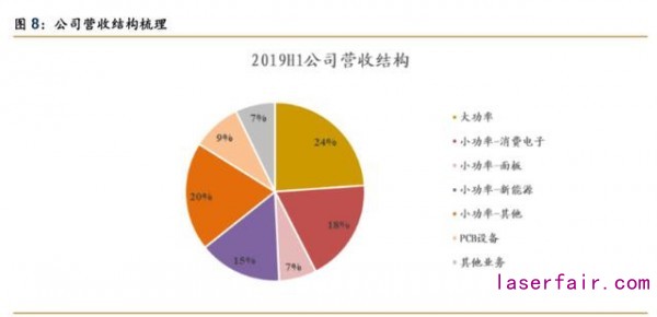 公司目前的主要業(yè)務(wù)板塊可劃分為激光設(shè)備、PCB 設(shè)備及其他。其中激光設(shè)備板塊包括 小功率激光設(shè)備與大功率激光設(shè)備。針對(duì)不同下游,公司小功率激光設(shè)備板塊可繼續(xù)細(xì)分為: