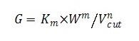 其中,Km:(用來說明材料性質的)系數;W:轉數;Vcut:切割速度;mn:常數。