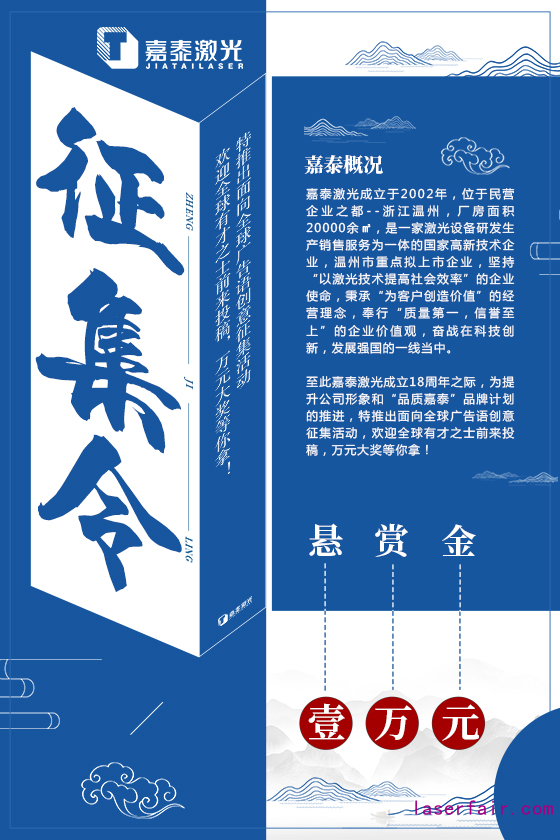 嘉泰激光懸賞10000元發(fā)布全球廣告創(chuàng)意征集令