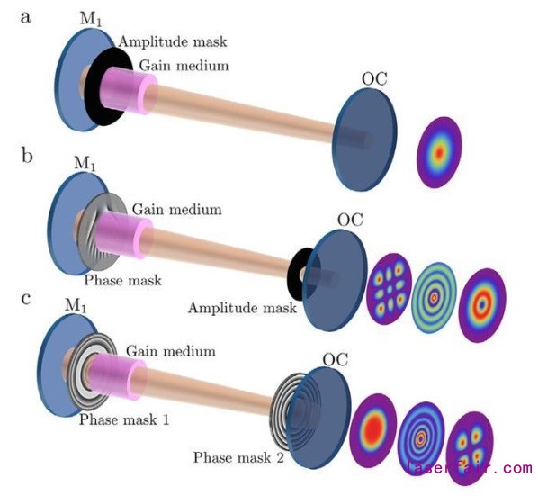 在這項開創性的工作之后,研究人員開始思考如何控制輸出場的結構形態,并成功展示了通過幅度濾波進行空間模式的控制,隨后使用相位濾波也實現了類似的效果,最近又結合了更多的自由度,如光的自旋和軌道角動量,并逐步朝著直接在光源處進行完全模式控制的最終目標邁進。