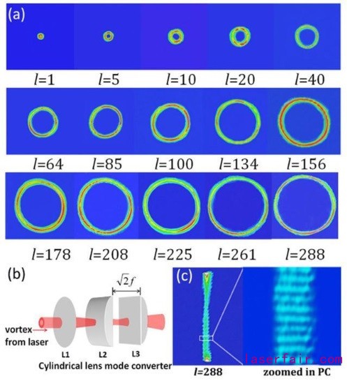 從那時起,OAM激光器不斷發展,并取得了眾多進展。目前激光器輸出OAM模式的最高螺旋度為l = 288,這是由刻在鏡面上的環形振幅掩模產生的,部分結果如圖4所示。