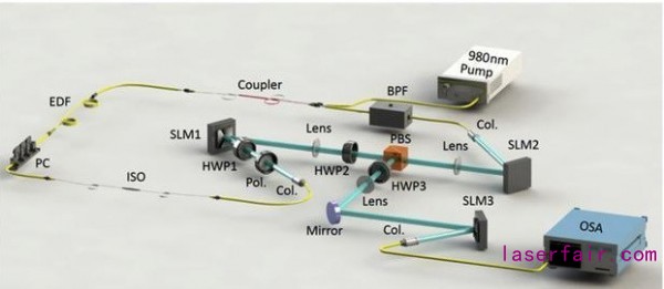 該激光器將光纖激光器的概念與帶有SLM的動態腔內模式控制相結合,形成渦旋光束,可在Δλ = 35 nm和Δl = 10范圍內調節波長和螺旋度。