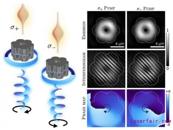 如圖11所示,微柱結構被手性泵浦所激發,激發出的OAM模式的螺旋度由泵浦光的旋向控制。