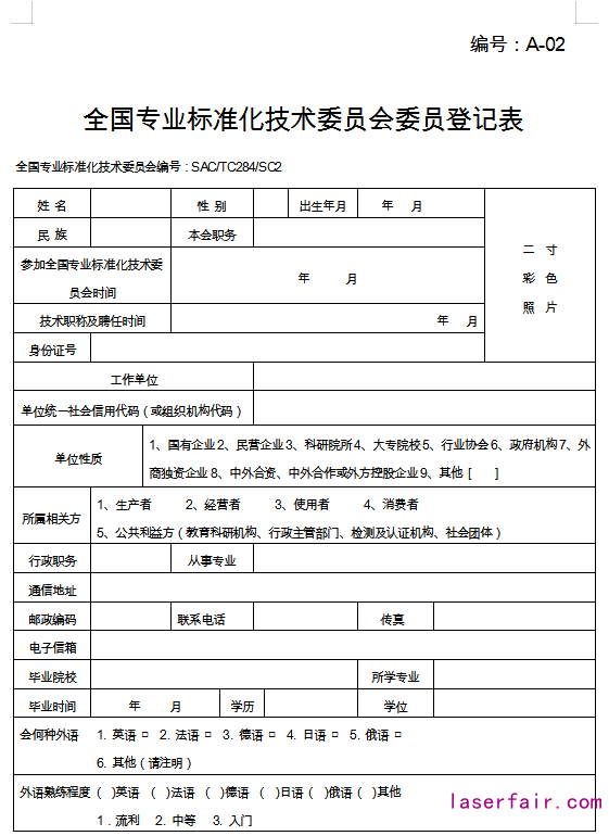 附件:全國(guó)專業(yè)標(biāo)準(zhǔn)化技術(shù)委員會(huì)委員登記表(下面文檔可供下載)