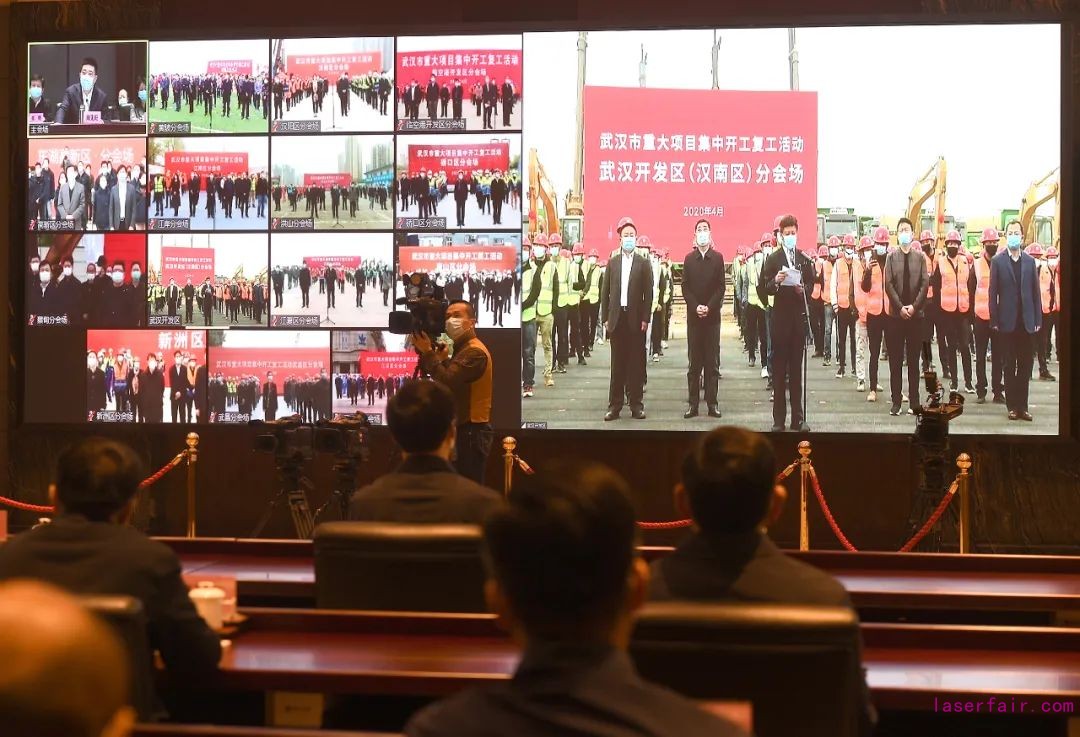武漢市召開重大項(xiàng)目建設(shè)推進(jìn)會(huì),各區(qū)(開發(fā)區(qū))設(shè)分會(huì)場(chǎng),以視頻連線的方式,集中開工重大項(xiàng)目100個(gè) 周超 攝