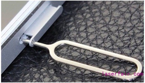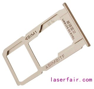 至于卡托的切割加工,目前較常用和比較理想的是激光切割,至于上圖的不銹鋼片上切小孔,也是激光完成。為了指導(dǎo)消費(fèi)者使用,卡托上經(jīng)常標(biāo)注一些指示,如“SIM 1”、“SIM 2”、“Disk”“此面朝屏”等字樣,一般在邊沿上,或者在鋼片上。這就必須使用激光打標(biāo)。