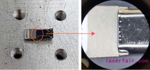應用分析:對比YAG點焊,QCW焊點更小,外觀更平整,更適合小型插頭焊接。