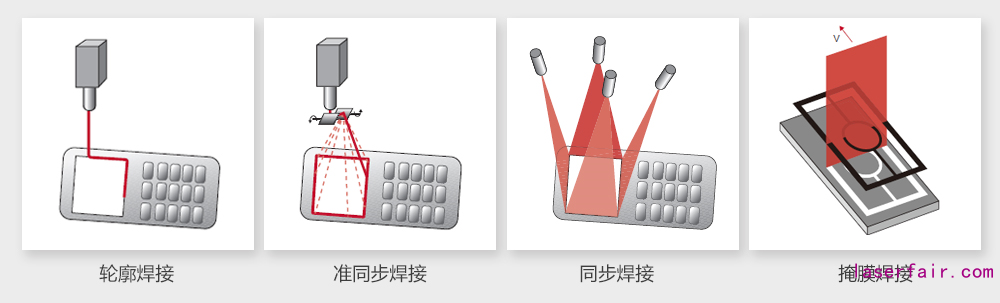 塑料激光焊接應(yīng)用方式和金屬焊接不同,根據(jù)不同的焊接任務(wù)和要求,激光焊接的方式大致有輪廓焊接、準(zhǔn)同步焊接、同步焊接、掩膜焊接、反射焊接和衍射焊接等。聯(lián)贏激光可以根據(jù)產(chǎn)品特性提供相應(yīng)的焊接方式方案。原理圖示意如下: