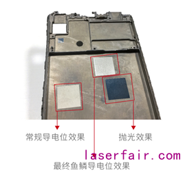 ②手機中板導電位打點:快速在手機中板拋光位置打點,打出緊密排布點狀,形成魚鱗狀效果。