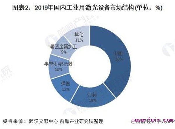 工業激光設備市場中,激光切割應用最為廣泛,占比達到39%,打標與焊接分列第二、三位,占比分別為19%、12%。