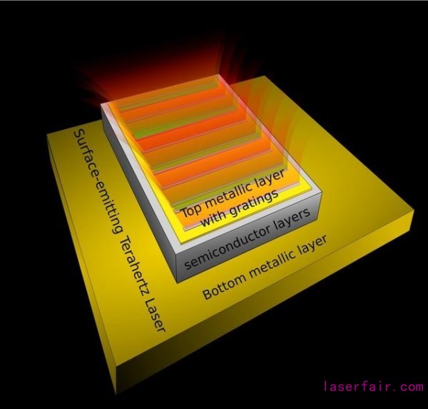 圖解:圖片展示的是單模太赫茲激光器的多瓦發射,此時有較多的光子從激光陣列進行發射