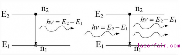 自發(fā)輻射(左)和受激輻射(右)
