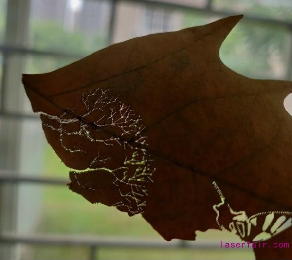 小編用激光雕刻的樹葉