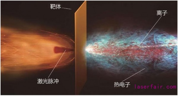 利用此前所述的超快激光器所產生的巨大光壓還可以將電子和質子從薄靶中打出,形成高能量的電子束和質子束,可以用于癌癥的質子放療。質子放療的優(yōu)勢在于能夠精確獵殺癌細胞而不會損傷正常的組織細胞,這也是目前正在迅猛發(fā)展的研究領域。