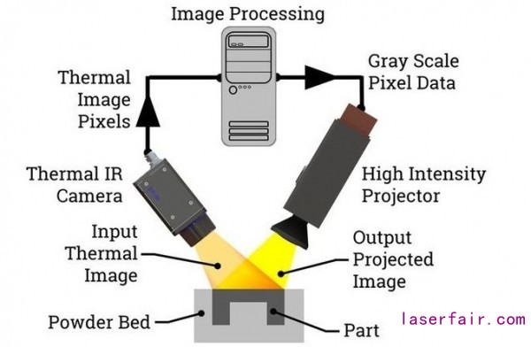 LAPS系統(tǒng)的光學(xué)和熱像儀不僅能監(jiān)督整個(gè)過(guò)程,還能控制整個(gè)過(guò)程。在成層過(guò)程中,熱像儀能夠?qū)崟r(shí)監(jiān)測(cè)床體的溫度,并更新發(fā)送到投影機(jī)的圖像,使整個(gè)區(qū)域的溫度均勻融合。因此,減少了用戶的輸入,只需要溫度和時(shí)間參數(shù),從而降低了操作機(jī)器所需的專業(yè)知識(shí)水平。