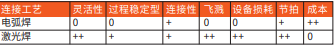 由于上述八個因素的限制,目前主流焊接Hairpin接頭的工藝有電弧焊接和激光焊接。如圖4所示,激光焊接在多個方面具有很大的優勢:首先,在靈活性方面,弧焊需要設計不同的焊接設備來適應不同的電機尺寸,而激光焊接可以用視覺識別的方法,只需要更改識別程序即可;其次,激光焊接比弧焊的穩定性更強,弧焊焊接銅材料2mm深度左右工藝穩定性很強,但是超過2mm以后,焊接不穩定且熱輸入量大,激光可以比弧焊焊接的更深且熱輸入量更少;第三,兩種工藝在連接性上其實差別不大,但是激光焊接的表面會更加光滑一些;第四,弧焊的熱輸入量較大會導致飛濺產生,而且容易引起焊接缺陷;第五,設備損耗方面,弧焊工藝面對不同的電機尺寸需要匹配不同的焊接設備,激光焊接則只需要更換保護玻璃即可;第五,兩種工藝的焊接節拍差距不大,但是切換設備時間激光焊接更具優勢;第六,成本方面,弧焊設備成本大約只占激光設備成本的五分之一左右,且激光工作站需要特殊的激光防護,人員安全培訓也比弧焊更難一些。
